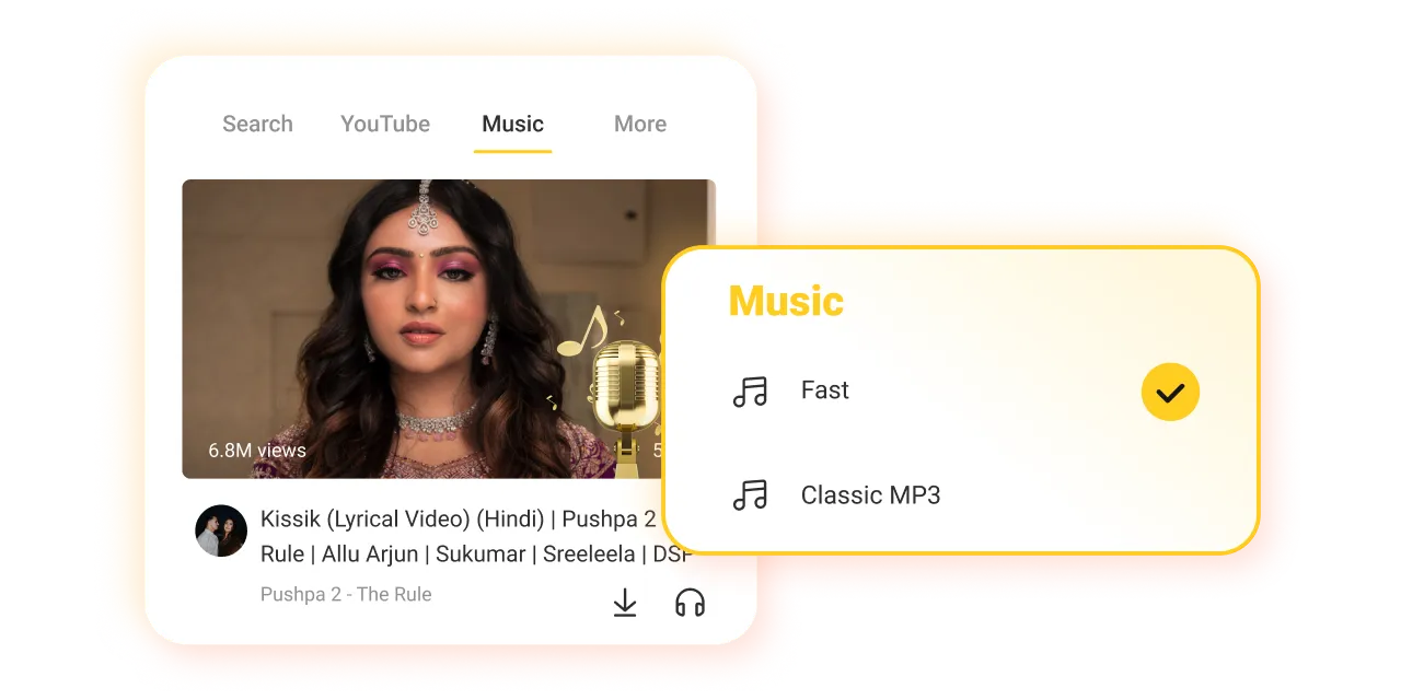 Our music downloader supports MP3 files up to 320 kbps, providing clear sound as if the singer is right in front of you.